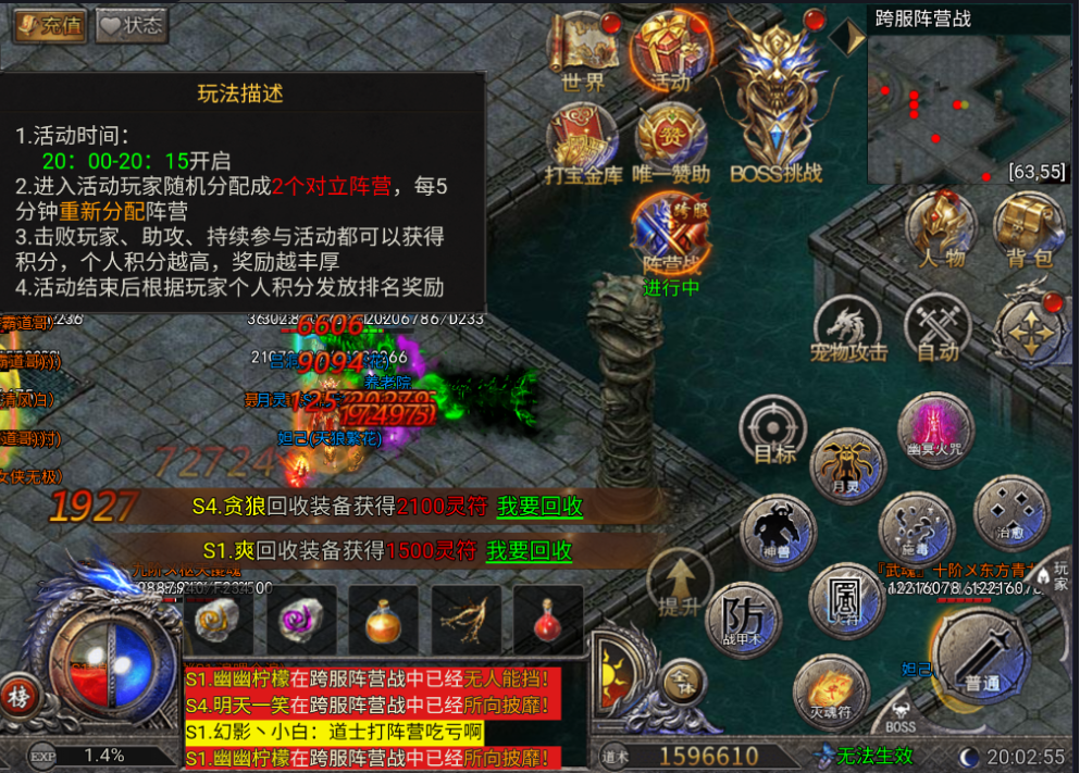 玩法描述:进入活动后,玩家会随机分配两个对立阵营,每5分钟重新分配阵营,分为蓝方和红方;蓝方就是自己人,红方就是敌人。