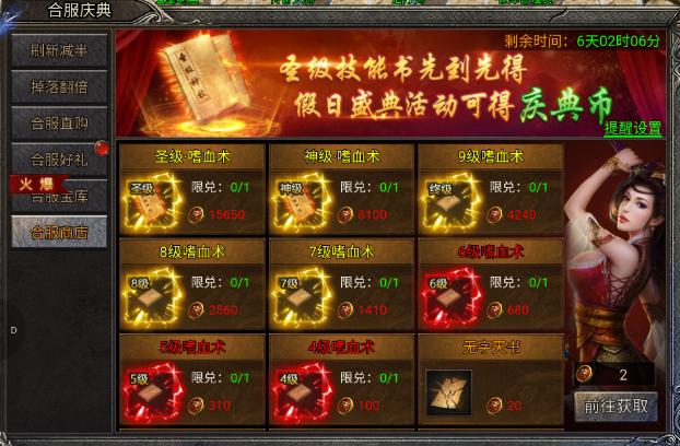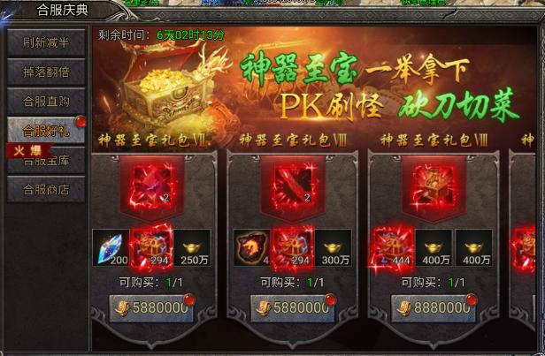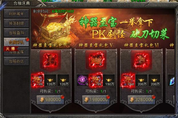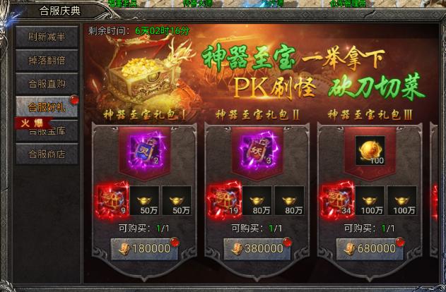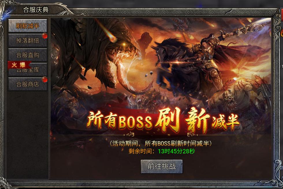 开启时间:第二次合服,活动持续七天左上角有倒计时