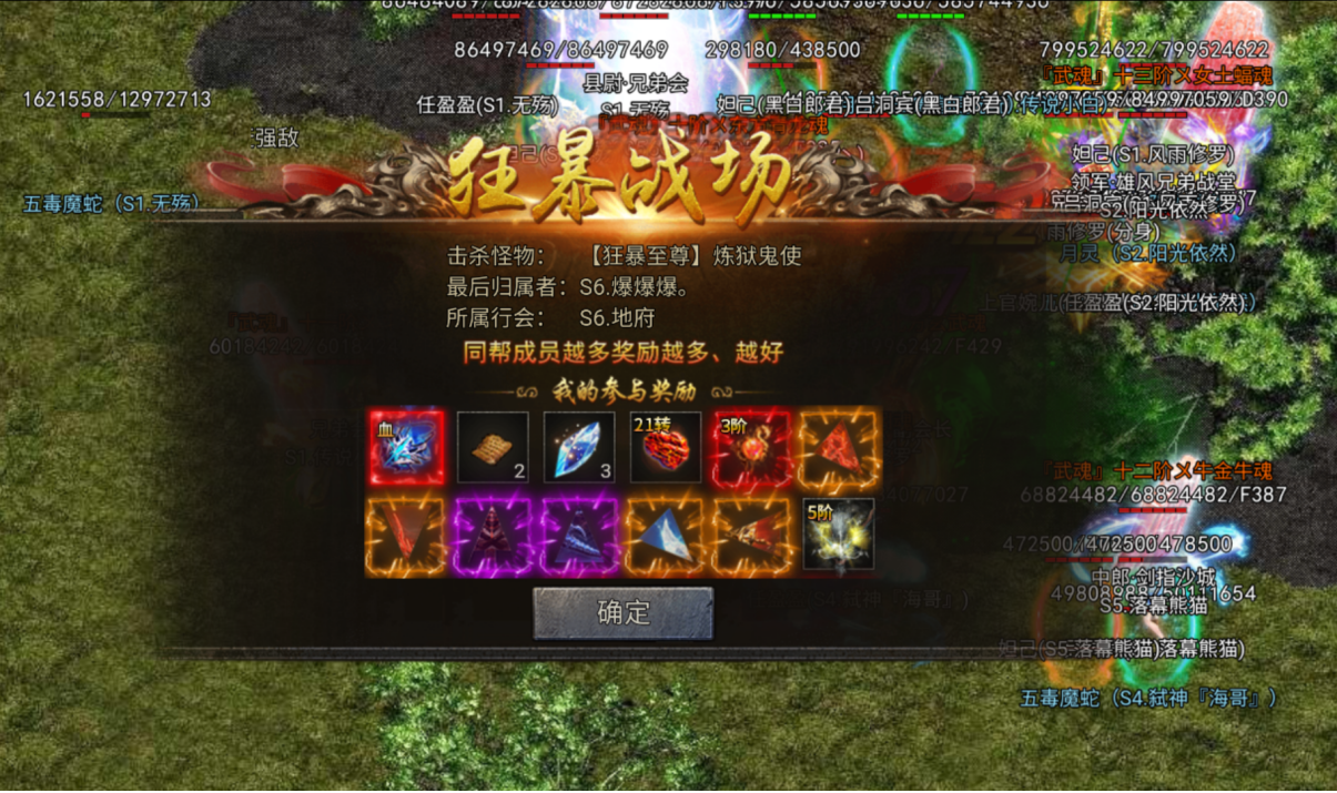 击杀boss后,在场的所有玩家都会获得大量的奖励,通过邮件形式发放~(同帮人数越多奖励越好、越多)