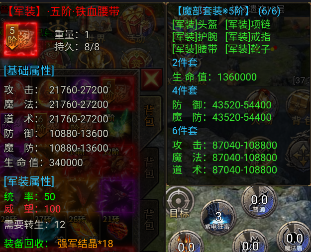 目前小编这边只开放到10层,遗迹属于跨服地图,跟战场一样,该地图不可使用传送特权,击杀boss可以获得军装装备和强军结晶,军装一共有6件,集齐2件、4件、6件都会有套装属性。